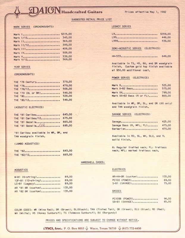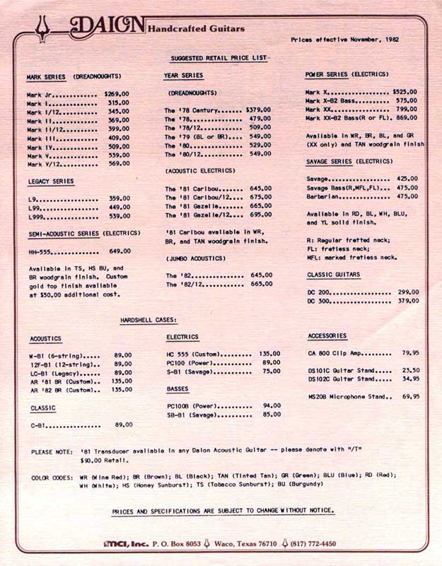 1982 Daion Catalog (and miscellaneous info) Please be patient loading the images on this page -- smallest (thumbnail pics) smaller (400 pixels wide) back to index